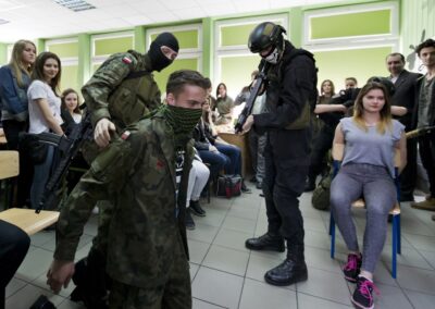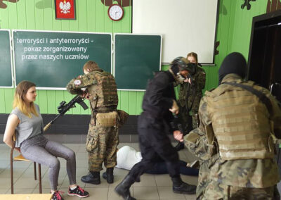 Nasi uczniowie przygotowali pokaz działania grupy antyterrorystycznej oraz zespołu pierwszej pomocy, zaprezentowali sale lekcyjne i pracownie zawodowe, oraz byli mili, życzliwi i odpowiadali na wszystkie pytania zadawane przez gości. Szczególne podziękowania dla uczniów i nauczycieli za przygotowanie na zajęciach pracowni gastronomicznej pysznych słodkości. Dziękujemy wszystkim za organizację dzisiejszego dnia!