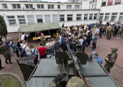 Miło nam było spotkać tak wielu gości i kandydatów do naszej szkoły. Przygotowaliśmy wiele atrakcji. Można było obejrzeć mundury i sprzęt wojskowy oraz spróbować wojskowej grochówki – dzięki uprzejmości batalionu logistycznego.
