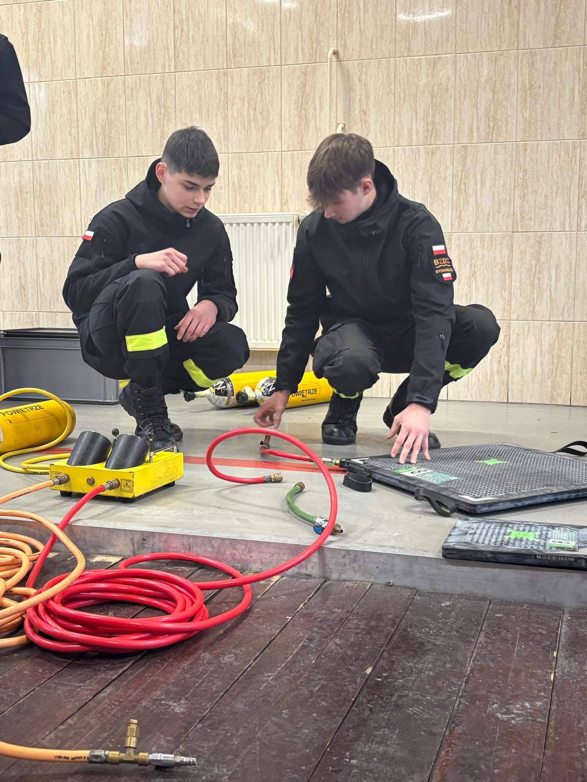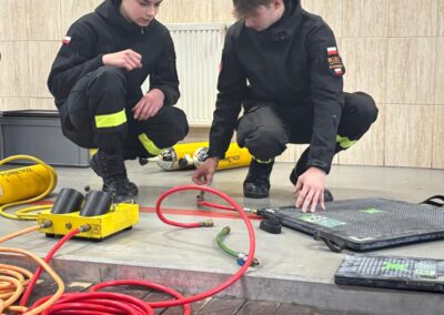 Uczniowie profilu strażackiego odwiedzili jednostkę OSP Solec Kujawski, gdzie mieli możliwość zapoznania się z nowym sprzętem będącym na wyposażeniu tej jednostki. Zwiedzali również muzeum pożarnictwa OSP Solec Kujawski. Podczas szkolenia zapoznali się z zasadami działania poduszek pneumatycznych stosowanych w ratownictwie drogowym oraz doskonalili zagadnienia związane z pierwszą pomocą.