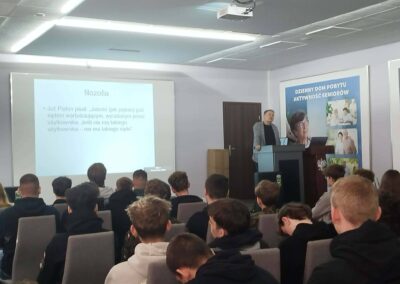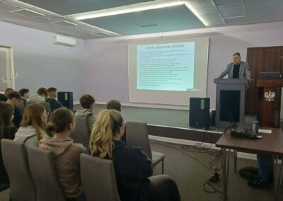 15 kwietnia obchodziliśmy Międzynarodowy Dzień Logistyki. Młodzież miała okazję zobaczyć pracownię logistyczną w WSB Merito, wysłuchać wykładu Pana Piotra Woźnego na temat jakości w logistyce i wziąć udział w konkursach.