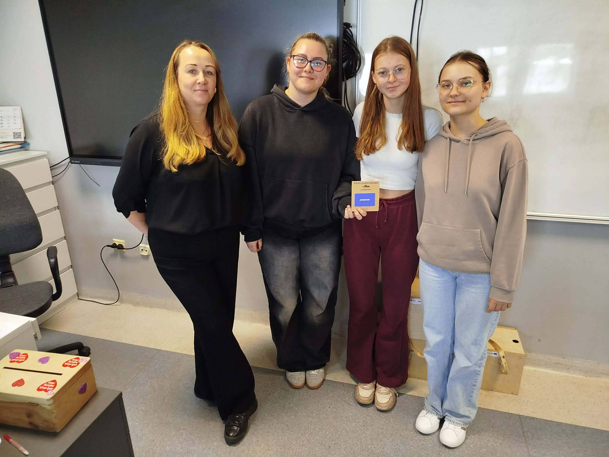 Logistyczną grę „Misja zaginiona paczka” wygrali uczniowie z klasy 3c: Tigran, Igor i Robert