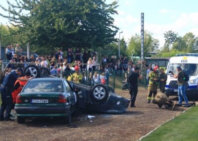 Braliśmy udział w wydarzeniu jako współorganizatorzy. Nasi uczniowie występowali jako osoby poszkodowane w symulacji wypadku autokaru oraz jako świadkowie wypadku komunikacyjnego z udziałem pijanego kierowcy. Ponadto, nadzorowaliśmy element wydarzenia polegający na masowym szkoleniu z prowadzenia resuscytacji krążeniowo-oddechowej.