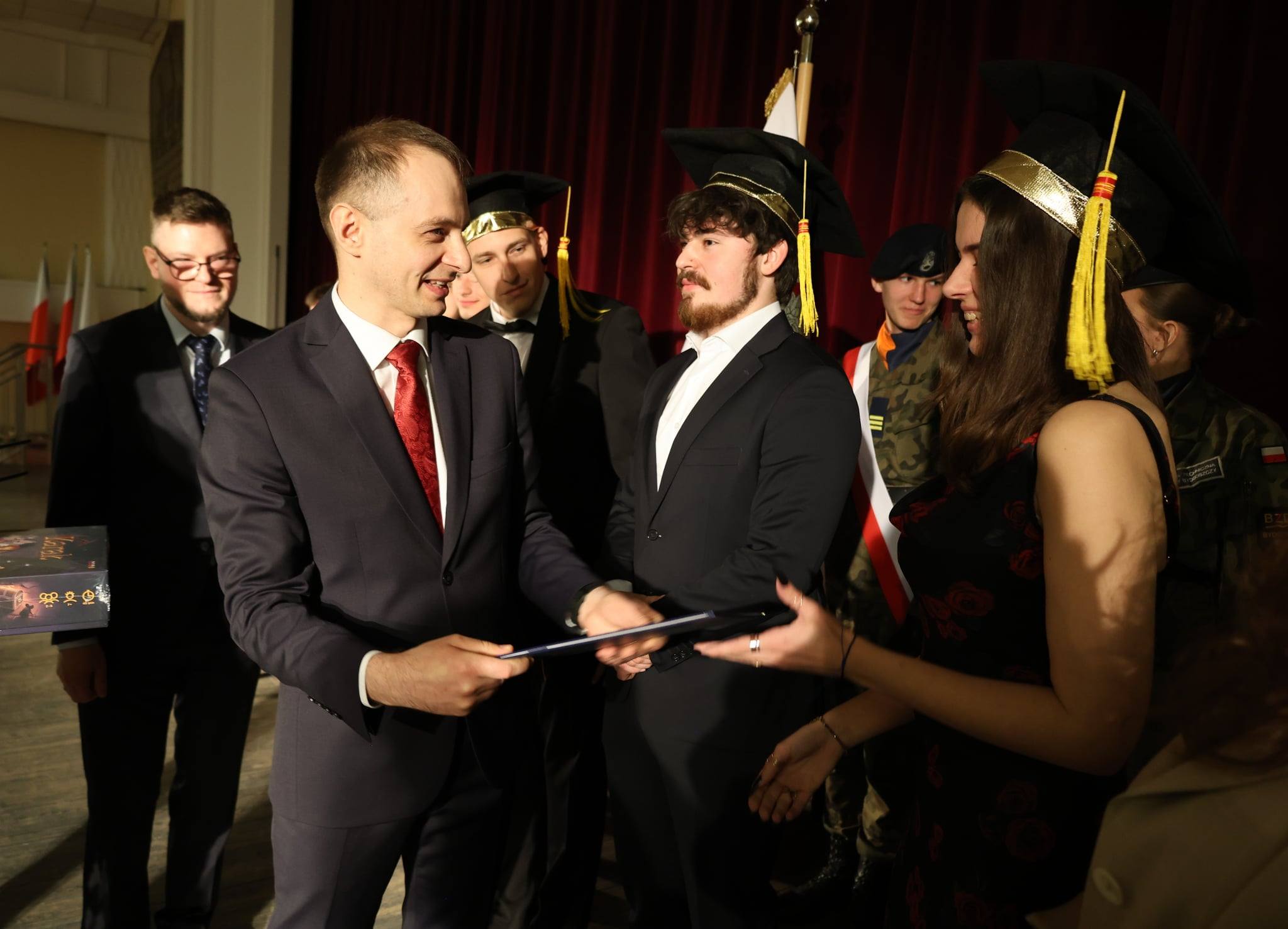 Uroczystość rozpoczęła się od oficjalnego powitania gości, nauczycieli oraz bohaterów wydarzenia – tegorocznych maturzystów. Następnie głos zabrał dyrektor szkoły, Pan Mateusz Hyska. W swoim przemówieniu podkreślił, jak ważnym momentem w życiu młodych ludzi jest zakończenie edukacji na tym etapie. Zwrócił uwagę na wytrwałość, jaką uczniowie wykazali się w trakcie nauki, niejednokrotnie mierząc się z trudnościami i wyzwaniami. Podziękował również nauczycielom za ich zaangażowanie, pasję oraz wsparcie, które towarzyszyło uczniom każdego dnia.