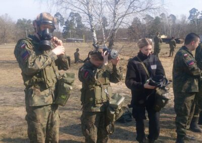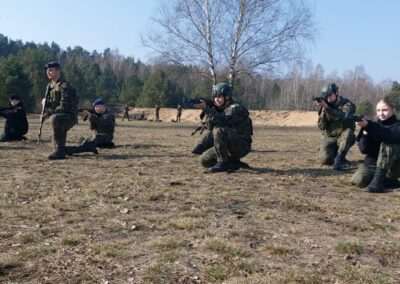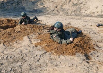 Intensywne szkolenie z przedstawicielami 1 blog na strzelnicy garnizonowej w Bydgoszczy. Kadeci trzecich klas mieli okazję szkolić się z postaw strzeleckich, pracy w parach i sekcjach, prowadzenia marszu w różnych formacjach. Doskonalono sposoby przetrwania w trudnych warunkach, nawiązywanie łączności, zakładanie filtracyjnej odzież ochronnej z maską przeciwgazową oraz przygotowywanie stanowiska strzeleckiego do pozycji leżącej.