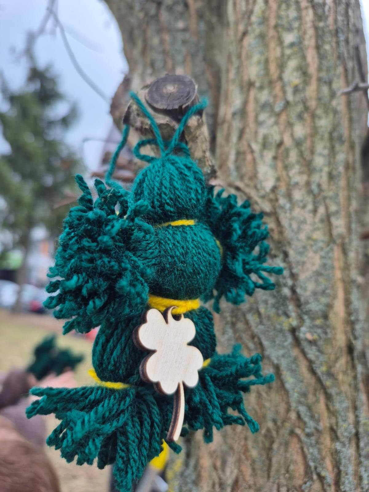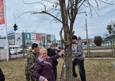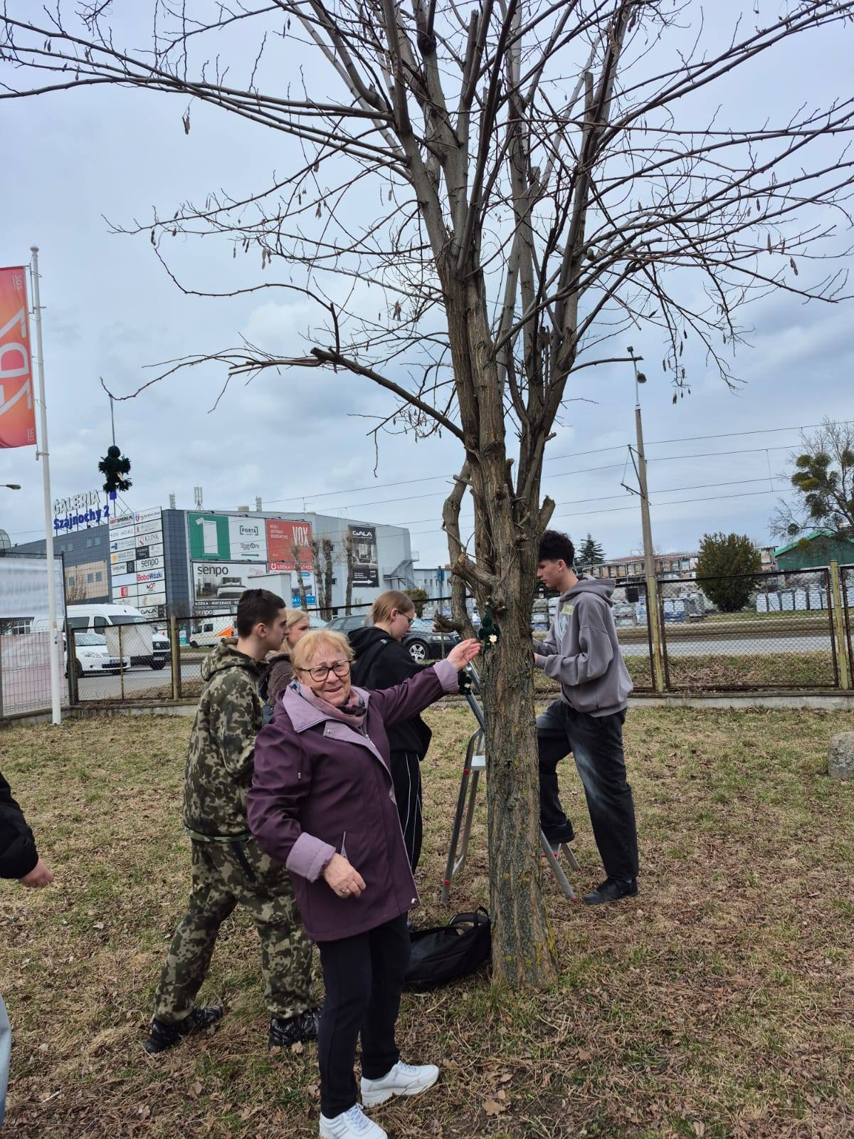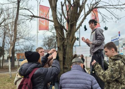 Spotkanie zakończyło się wspólnym zawieszaniem „Patryczków” na drzewie przed szkołą oraz pamiątkowymi zdjęciami.