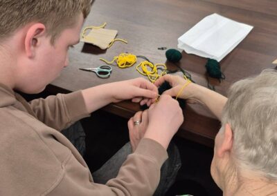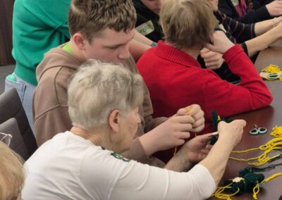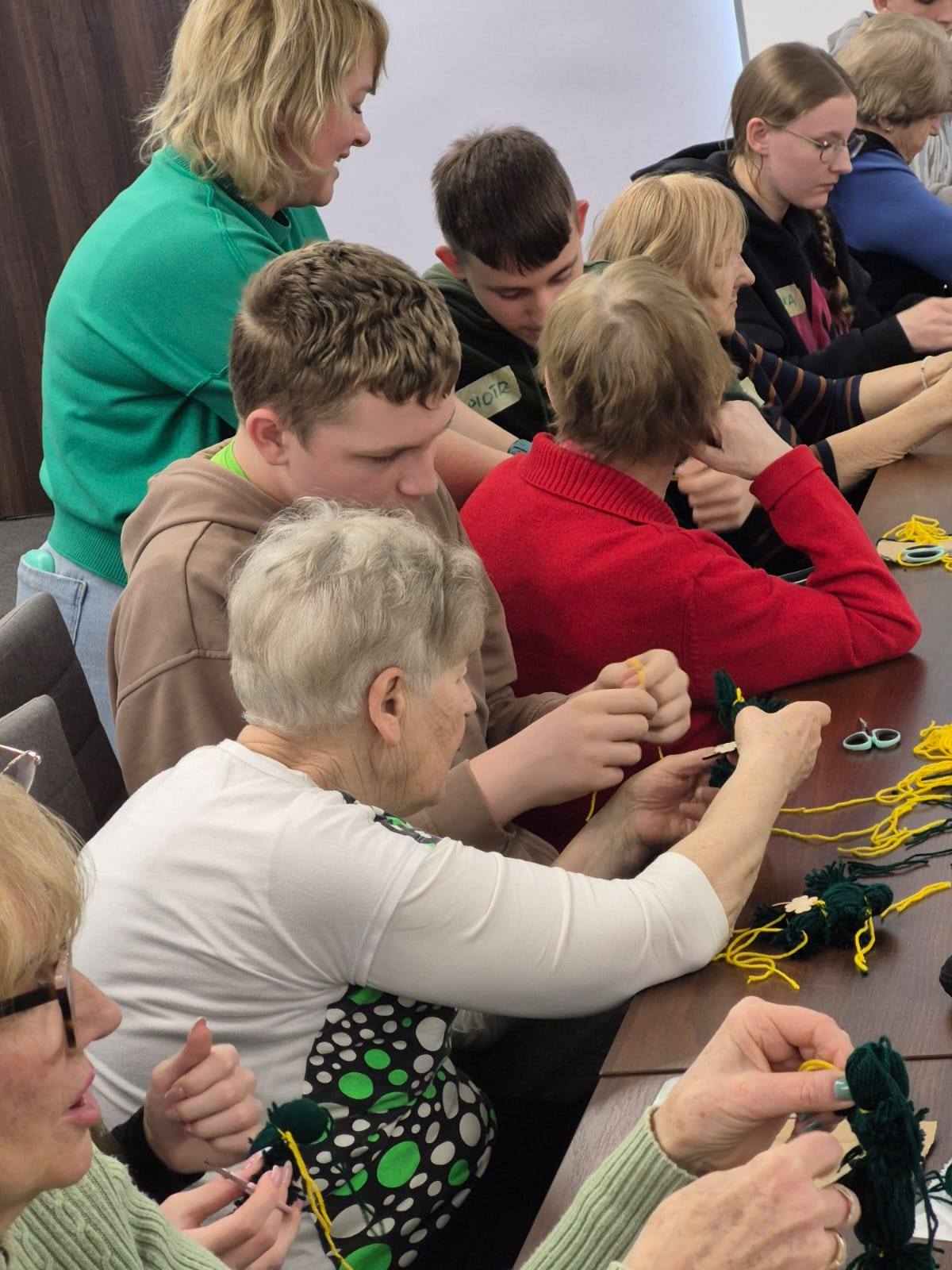 Z okazji Dnia Św. Patryka, który dziś obchodziliśmy, zorganizowaliśmy warsztaty dla uczniów i Seniorów. Podczas spotkania młodzież z klasy 1C współpracowała z Seniorami wykonując pracę techniczną z włóczki, tzw. „Patryczki”.