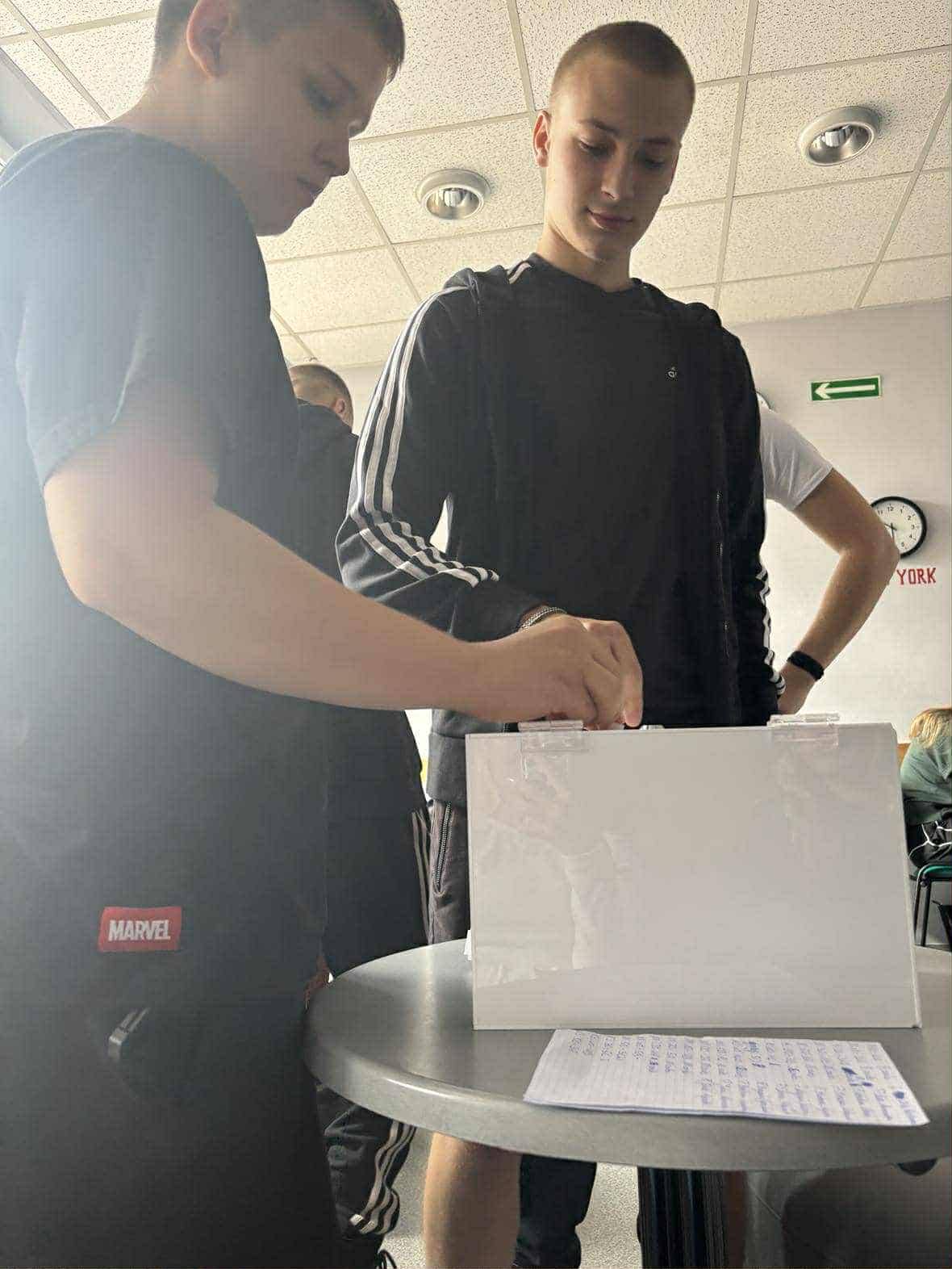 Nad prawidłowym przebiegiem wyborów czuwali: Pan Robert Gulczyński, Pani Patrycja Sadowska oraz uczniowie z samorządu szkolnego.