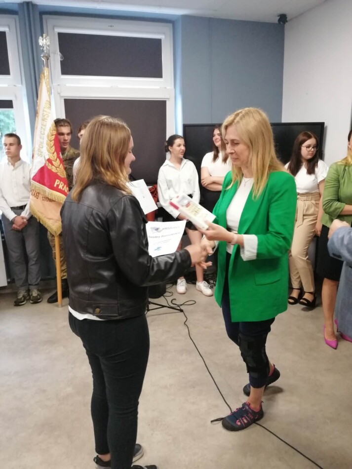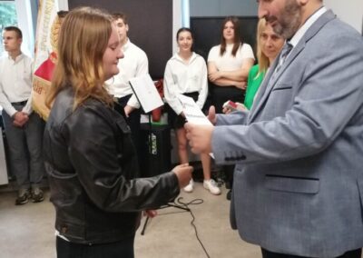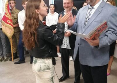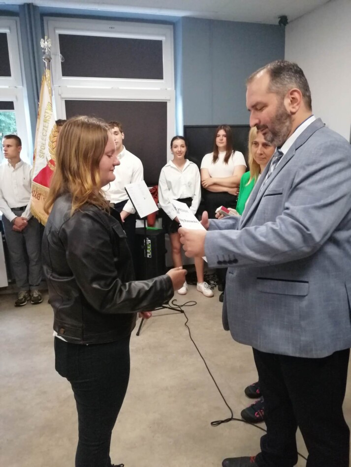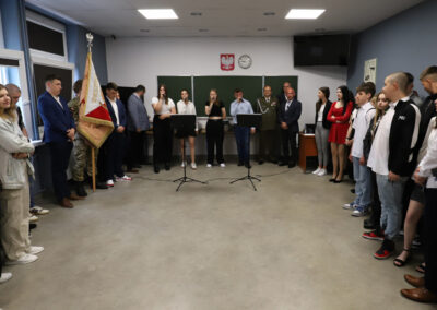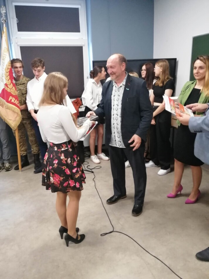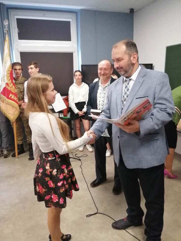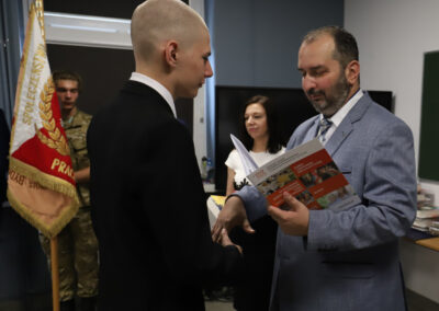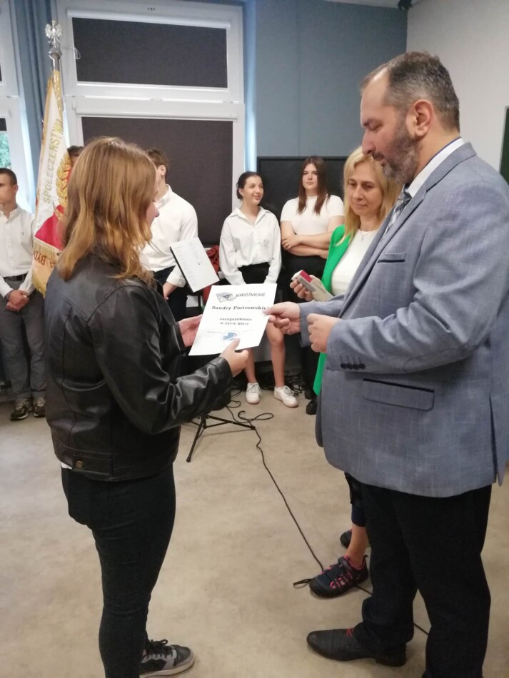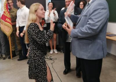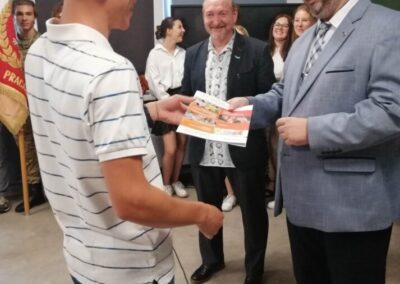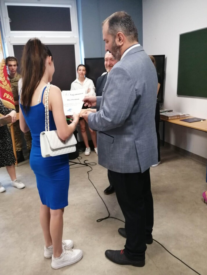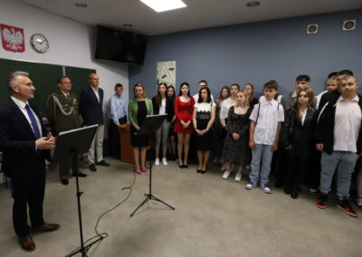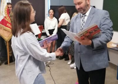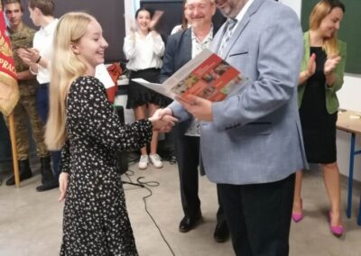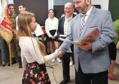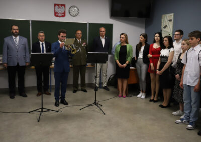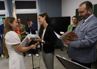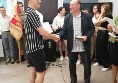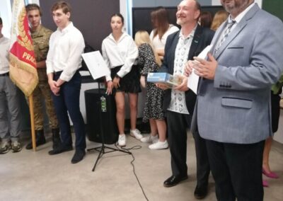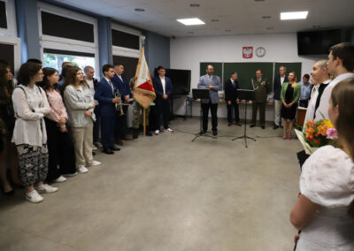 Podczas apelu do uczniów przemówił Pan Prezes Paweł Duzdowski oraz Dyrektor szkoły Pan Mieszko Wdowiak, który wręczał świadectwa z wyróżnieniem 📜oraz nagrody 🏆za liczne osiągnięcia uczniów. Obecni byli również Pan Pułkownik Artur Staszak, Pan Pułkownik Krzysztof Groch, Pan Major Marek Zwiefka, Grono Pedagogiczne i rodzice uczniów.