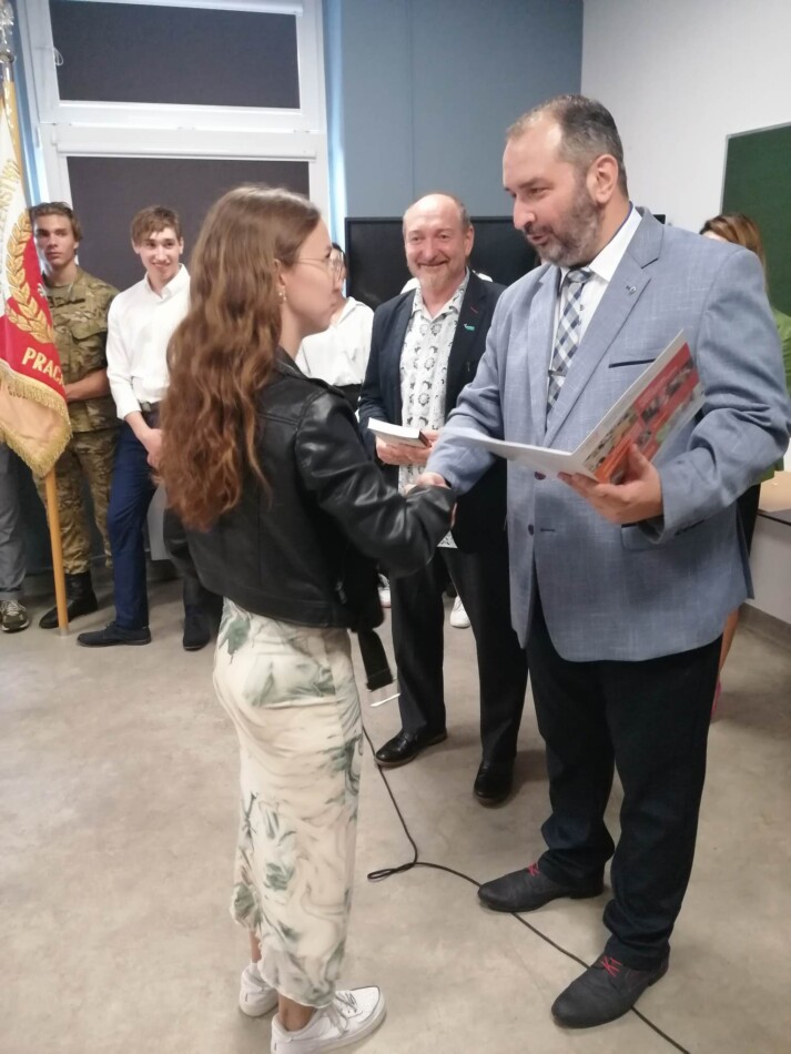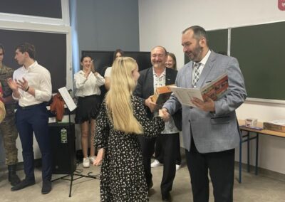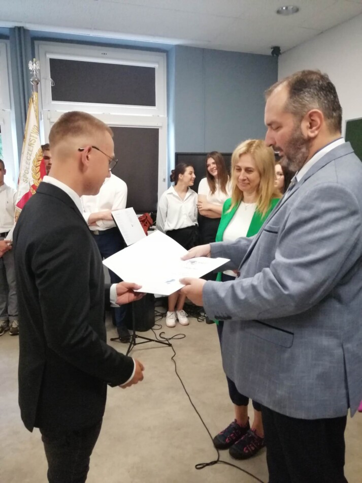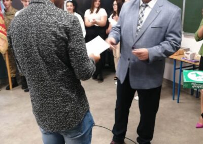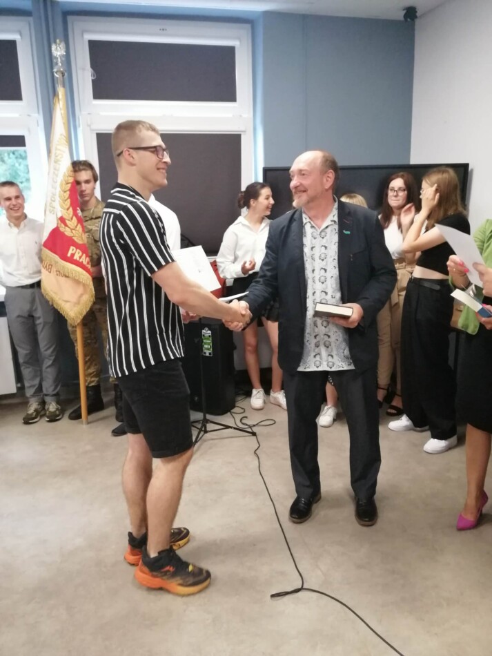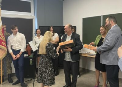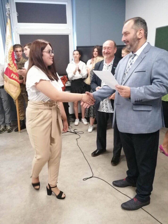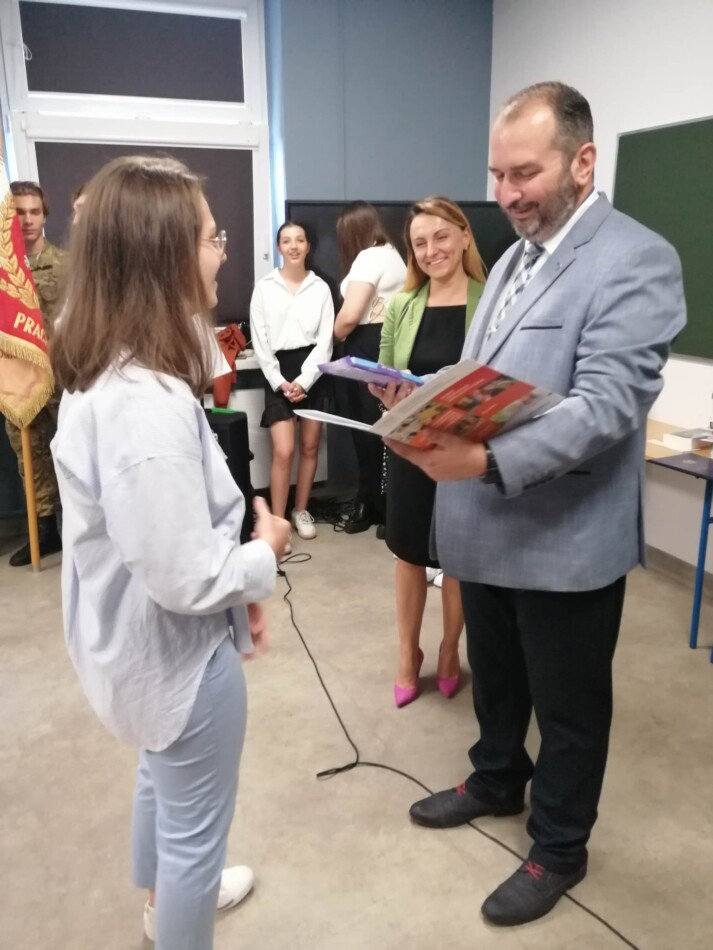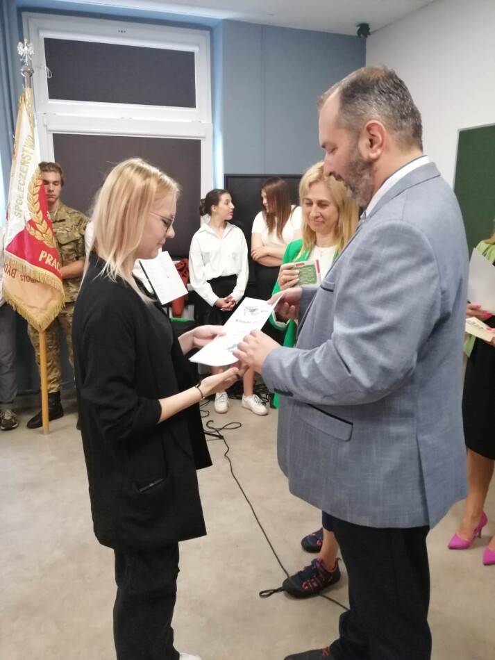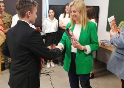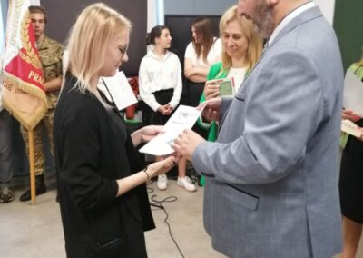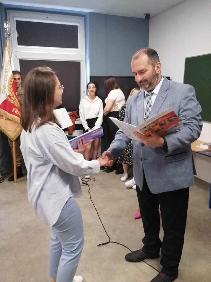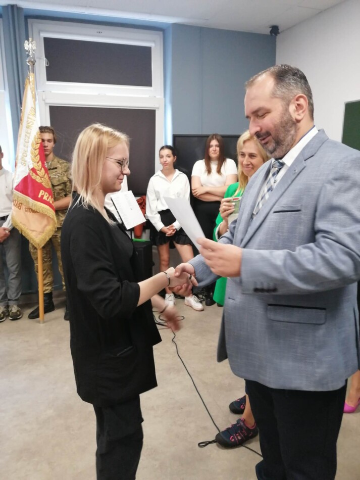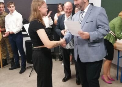Podczas apelu do uczniów przemówił Pan Prezes Paweł Duzdowski oraz Dyrektor szkoły Pan Mieszko Wdowiak, który wręczał świadectwa z wyróżnieniem 📜oraz nagrody 🏆za liczne osiągnięcia uczniów. Obecni byli również Pan Pułkownik Artur Staszak, Pan Pułkownik Krzysztof Groch, Pan Major Marek Zwiefka, Grono Pedagogiczne i rodzice uczniów.