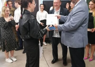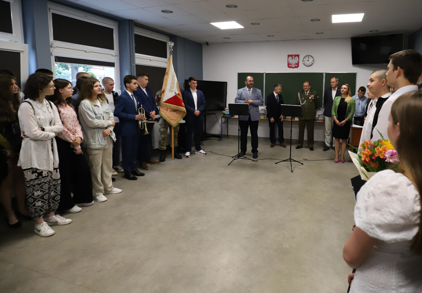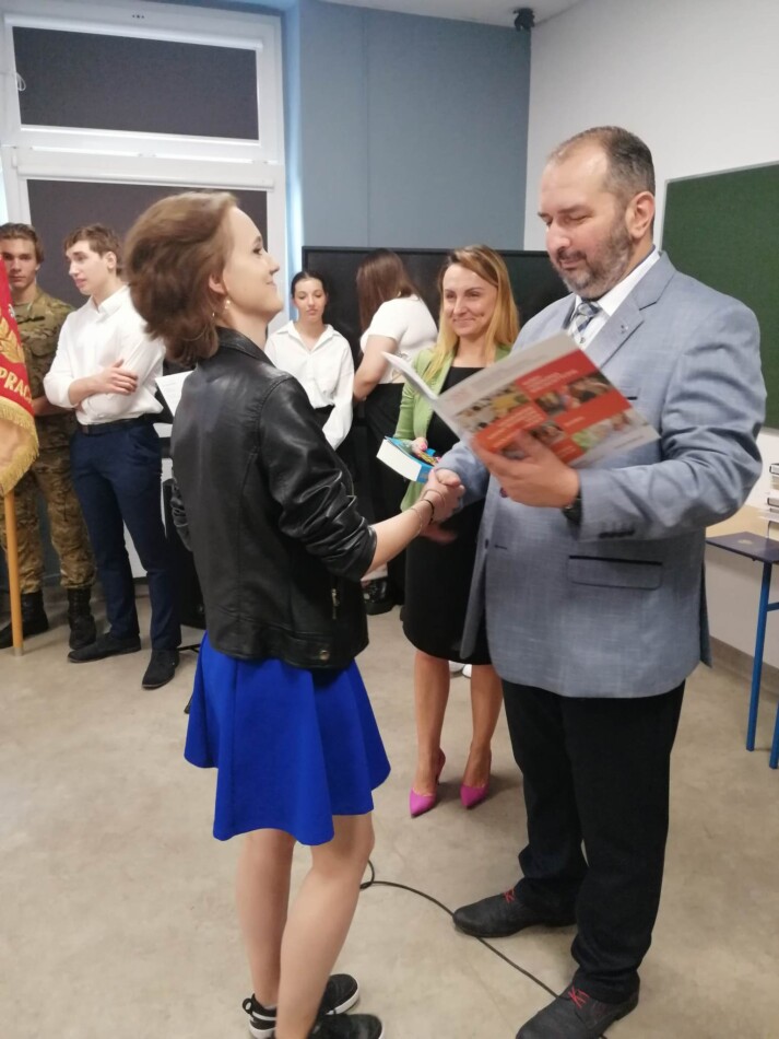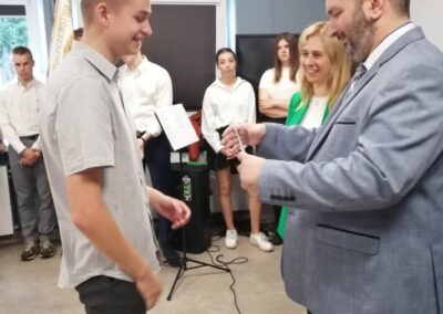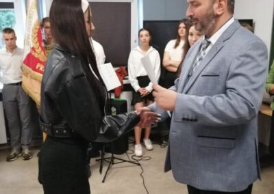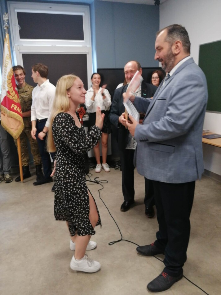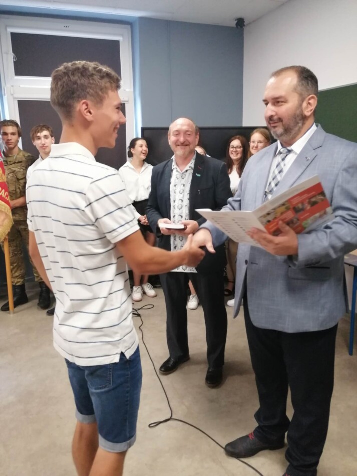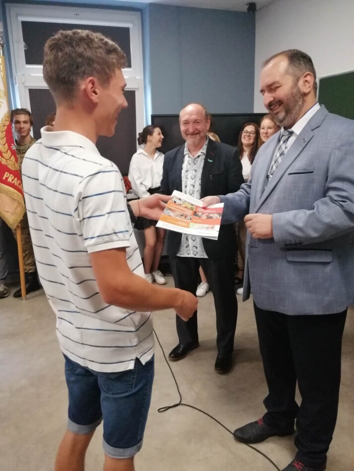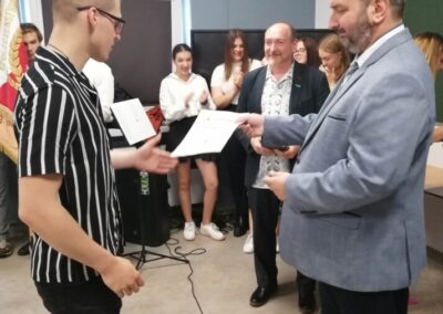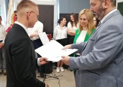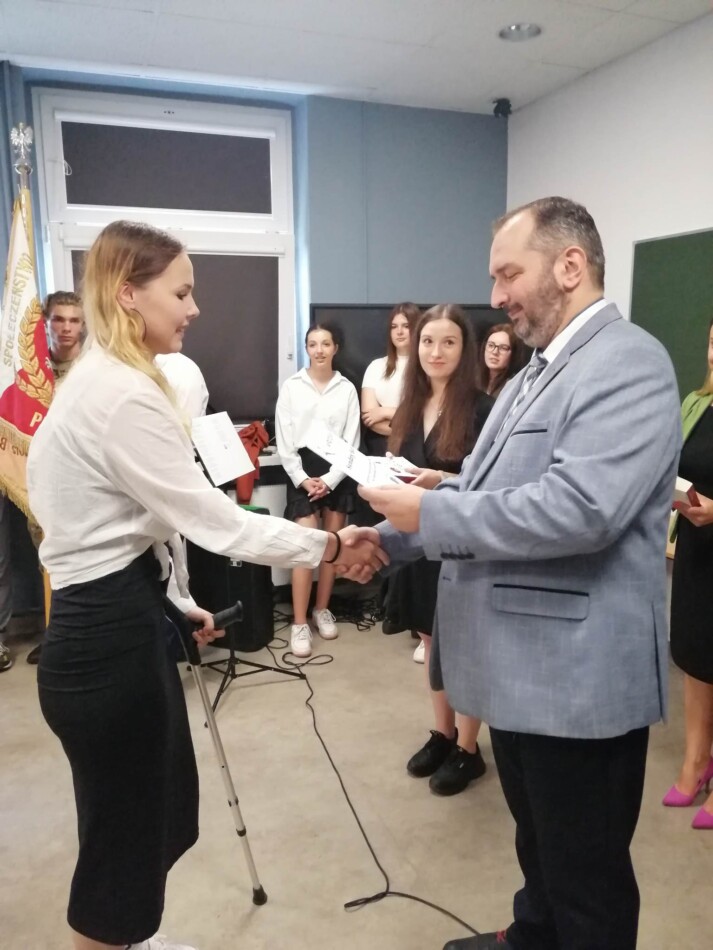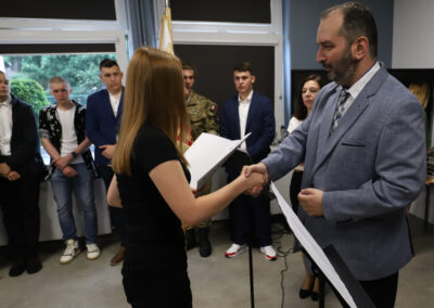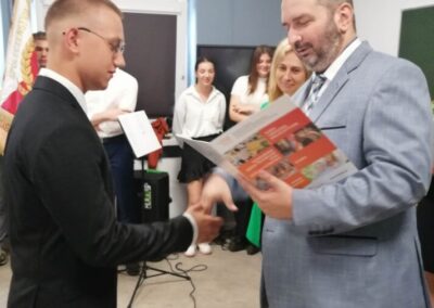 Podczas apelu do uczniów przemówił Pan Prezes Paweł Duzdowski oraz Dyrektor szkoły Pan Mieszko Wdowiak, który wręczał świadectwa z wyróżnieniem 📜oraz nagrody 🏆za liczne osiągnięcia uczniów. Obecni byli również Pan Pułkownik Artur Staszak, Pan Pułkownik Krzysztof Groch, Pan Major Marek Zwiefka, Grono Pedagogiczne i rodzice uczniów.