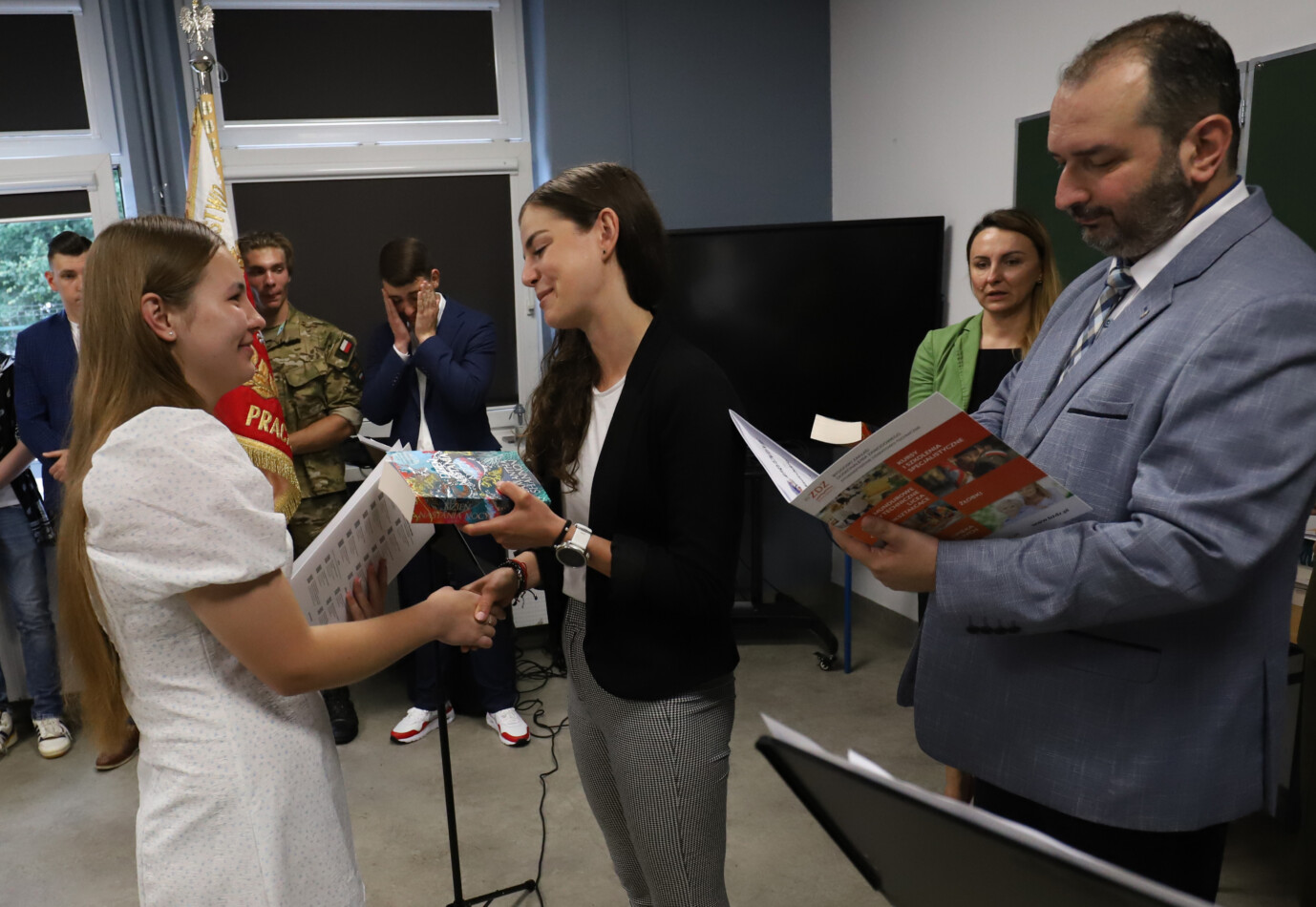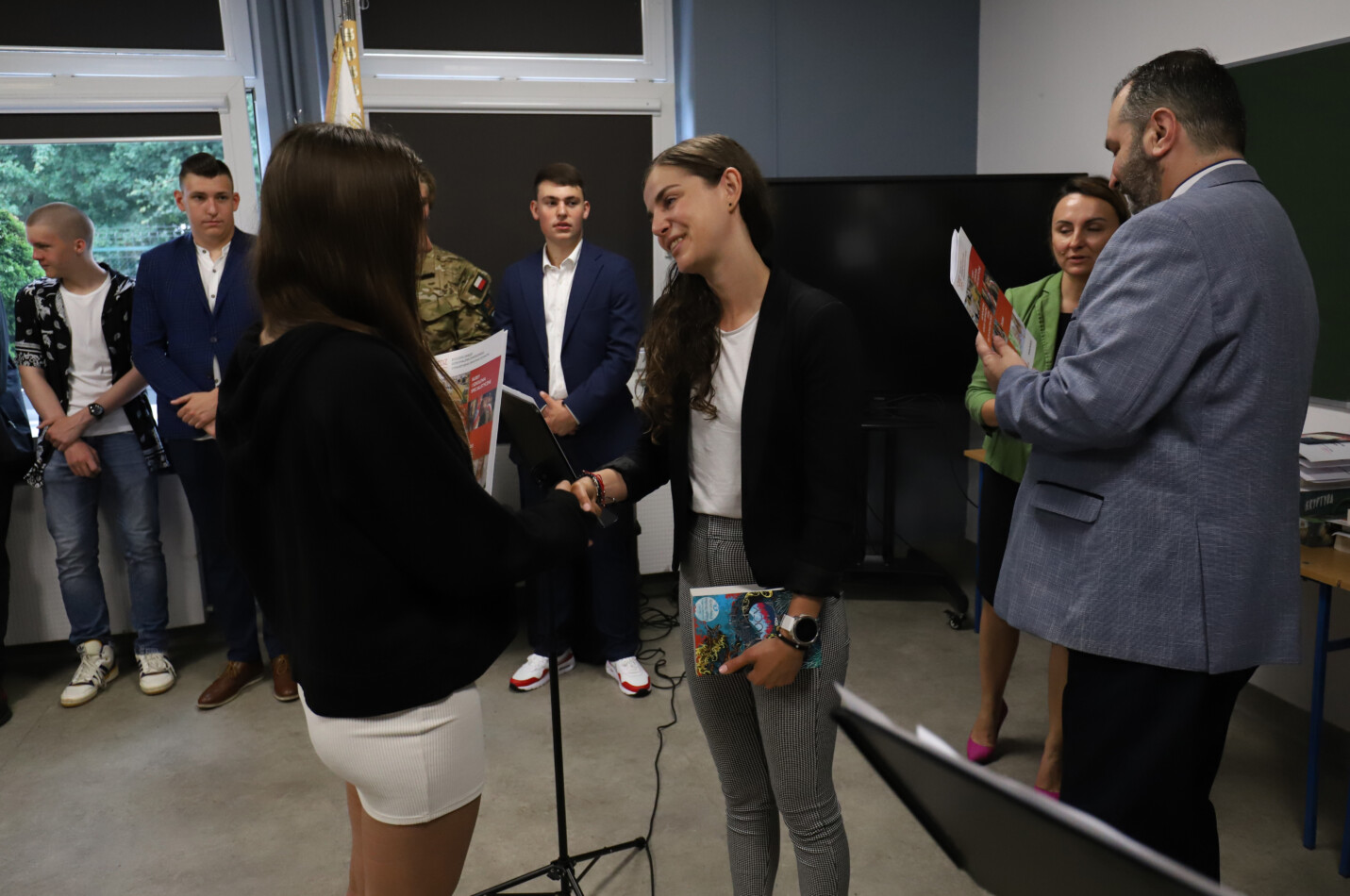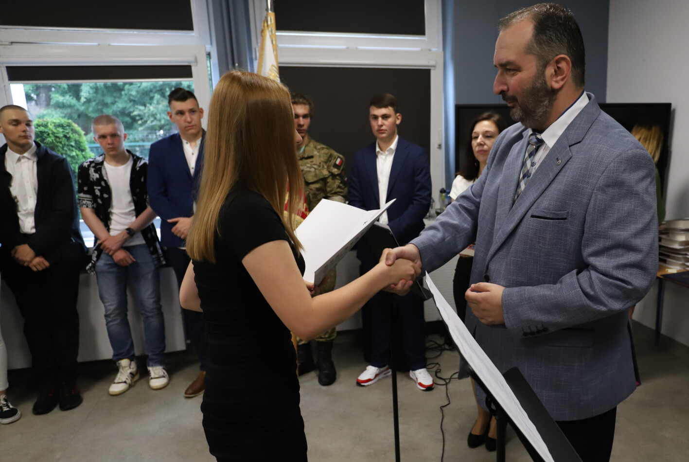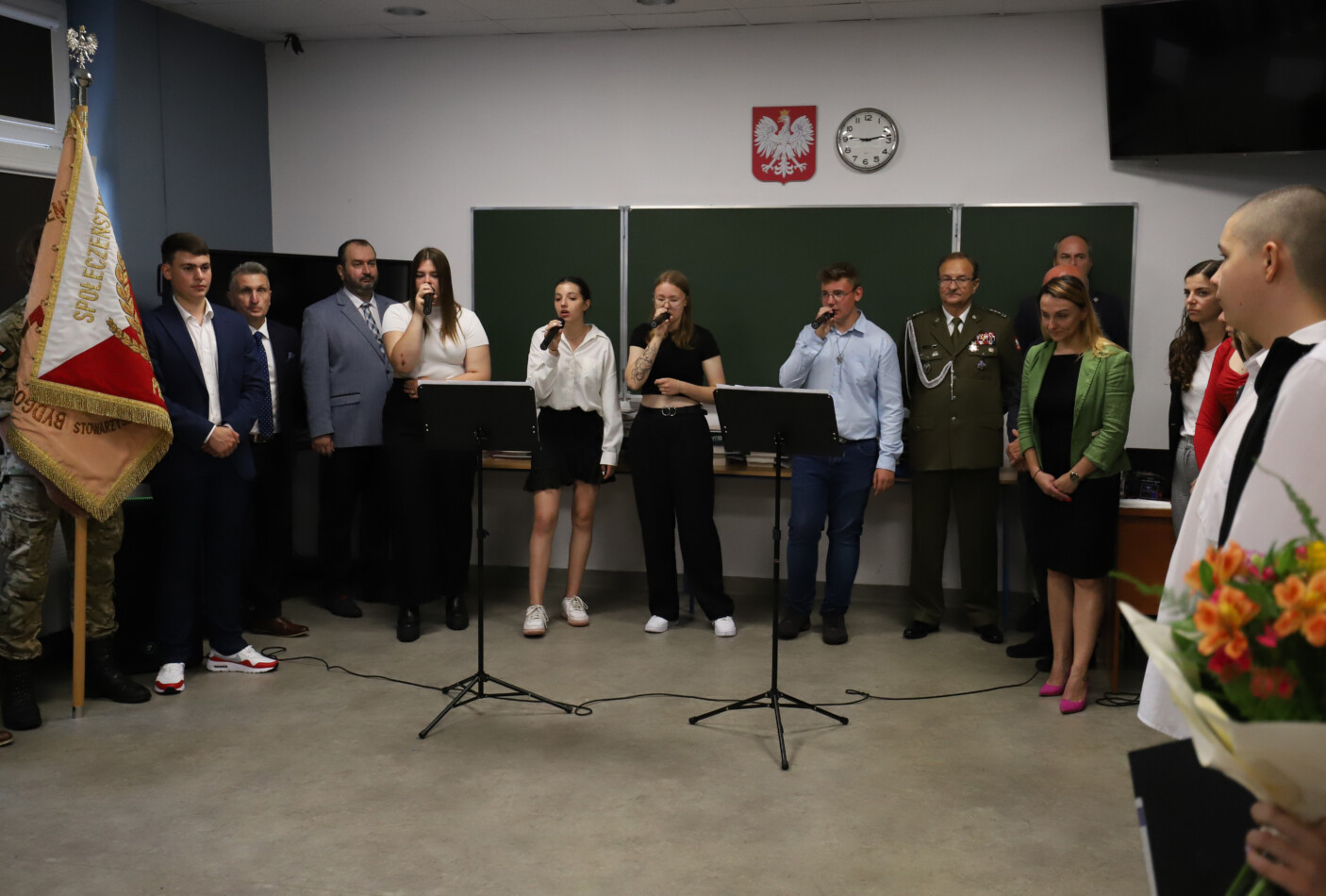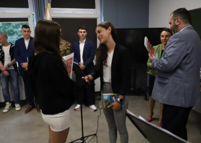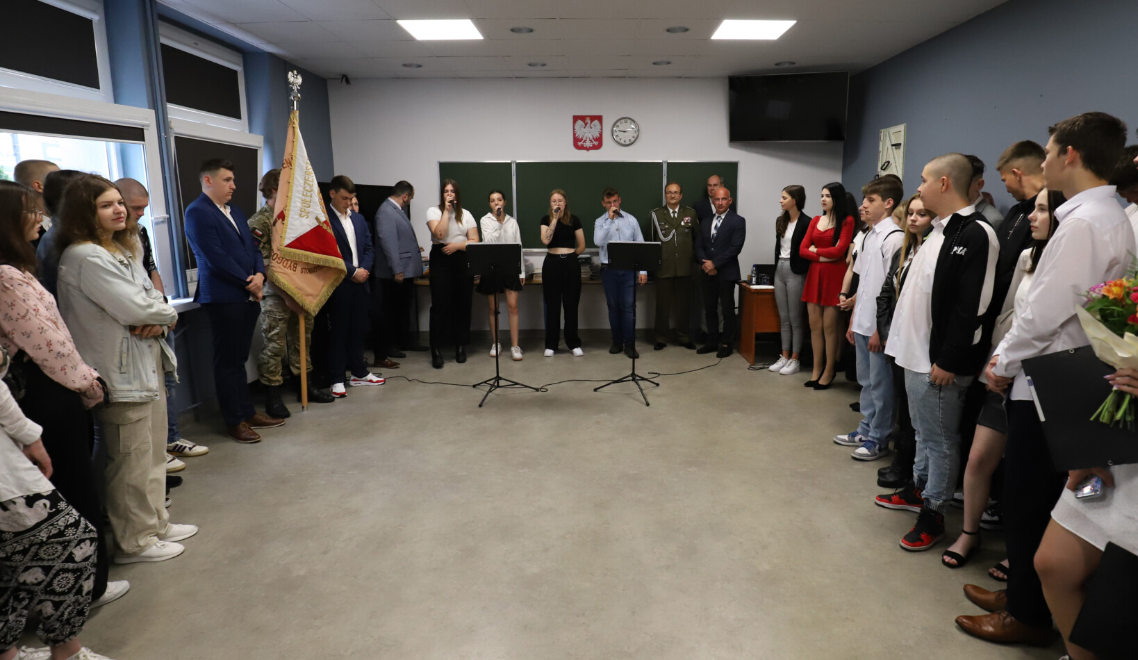 Podczas apelu do uczniów przemówił Pan Prezes Paweł Duzdowski oraz Dyrektor szkoły Pan Mieszko Wdowiak, który wręczał świadectwa z wyróżnieniem 📜oraz nagrody 🏆za liczne osiągnięcia uczniów. Obecni byli również Pan Pułkownik Artur Staszak, Pan Pułkownik Krzysztof Groch, Pan Major Marek Zwiefka, Grono Pedagogiczne i rodzice uczniów.